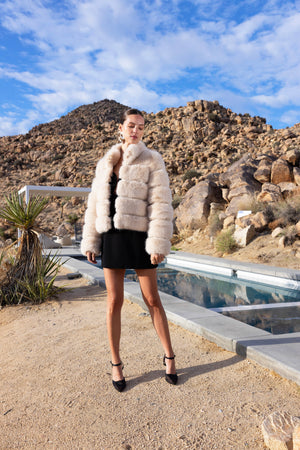 Elevated Evenings Faux Fur Jacket in Beige