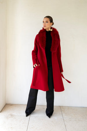 The Heirloom Wool & Fur Coat in Red
